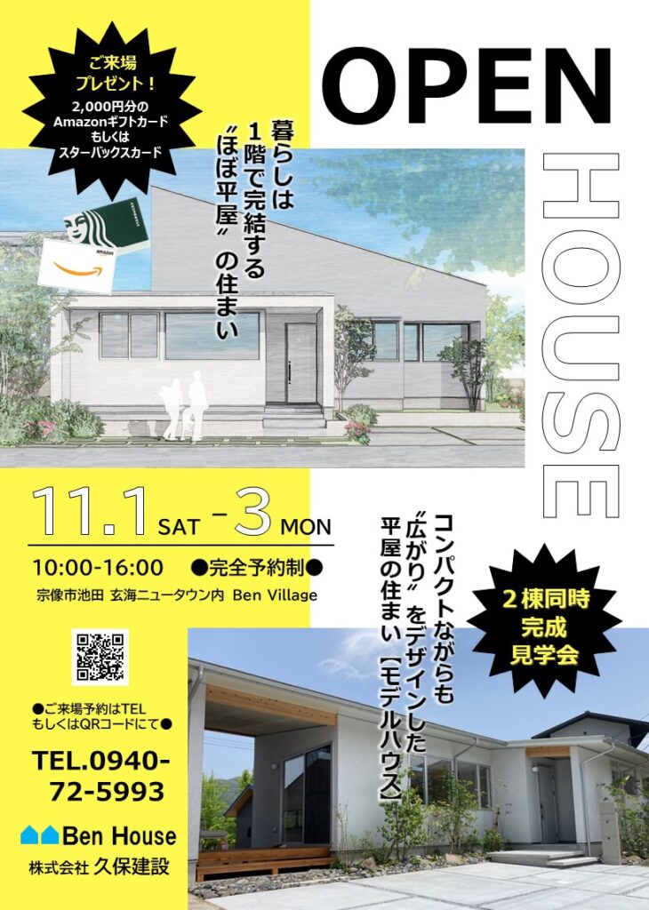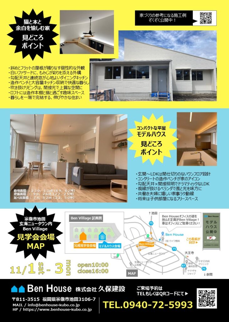 【宗像市池田 玄海ニュータウン内 Ben Village にて完全予約制 2棟同時見学会開催】