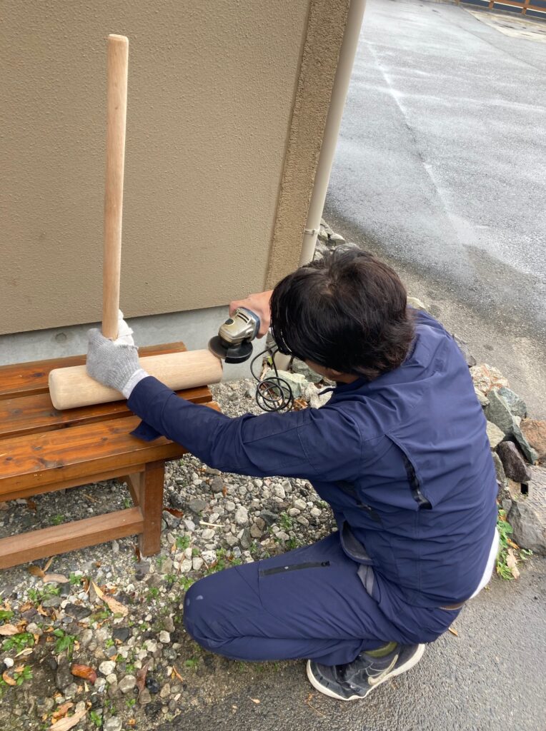 腰痛のスタッフたちに代わって、お越しいただいたOBの方々にも実際に餅つきのお手伝いを・・・というかほぼお任せ状態。