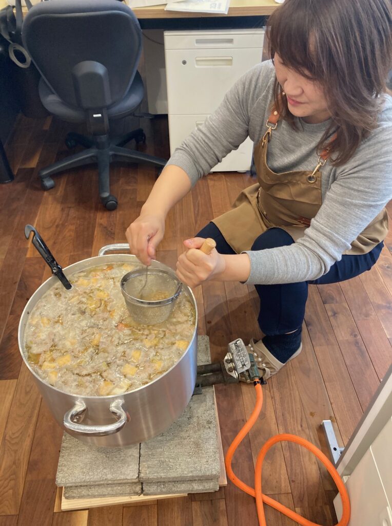 杵・臼のメンテナンスから始まり、プレ餅つき、豚汁の仕込みなどの準備を経ていよいよ当日。