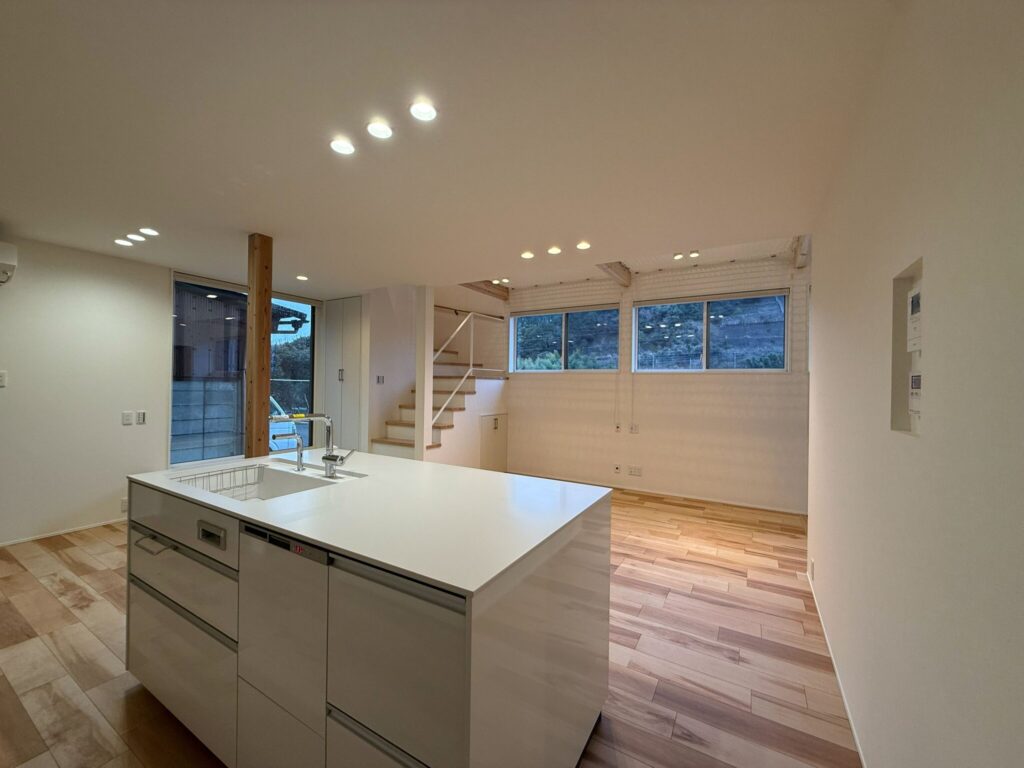二列型キッチンは、空間全体を見渡せる司令塔のような存在