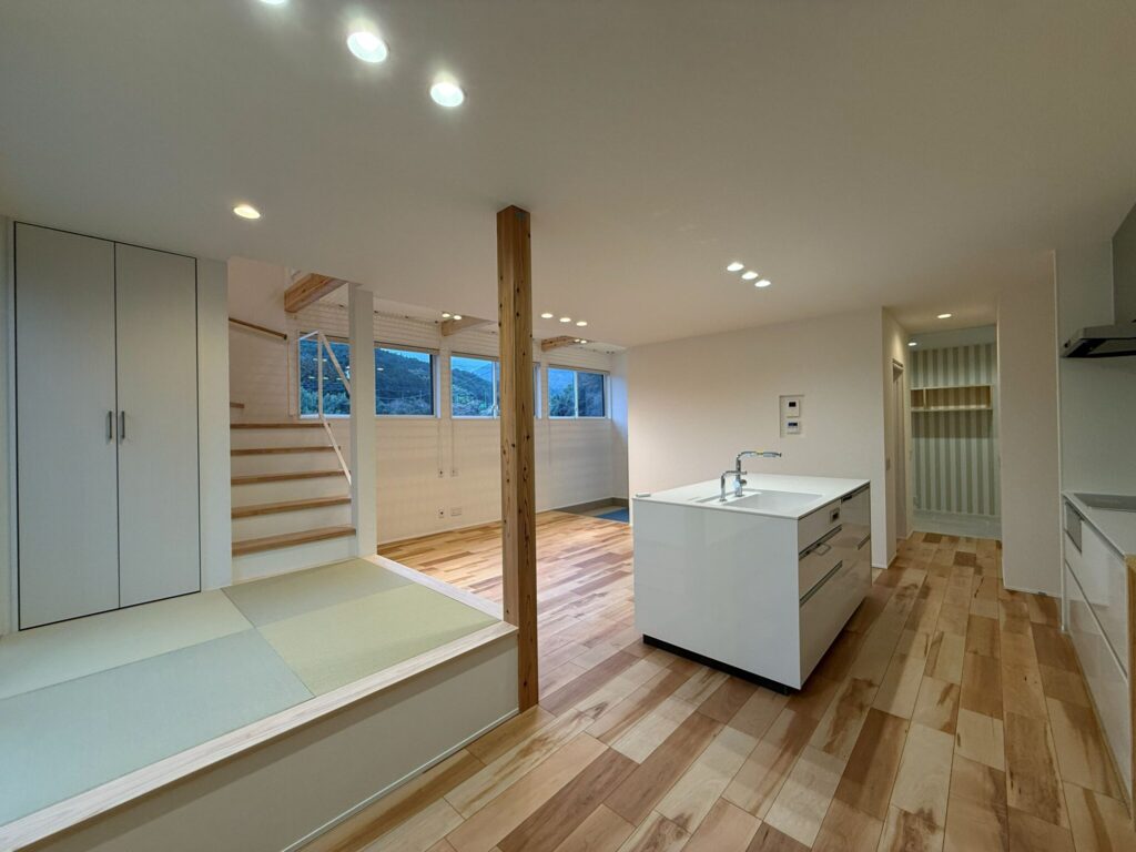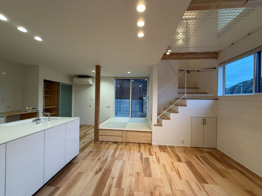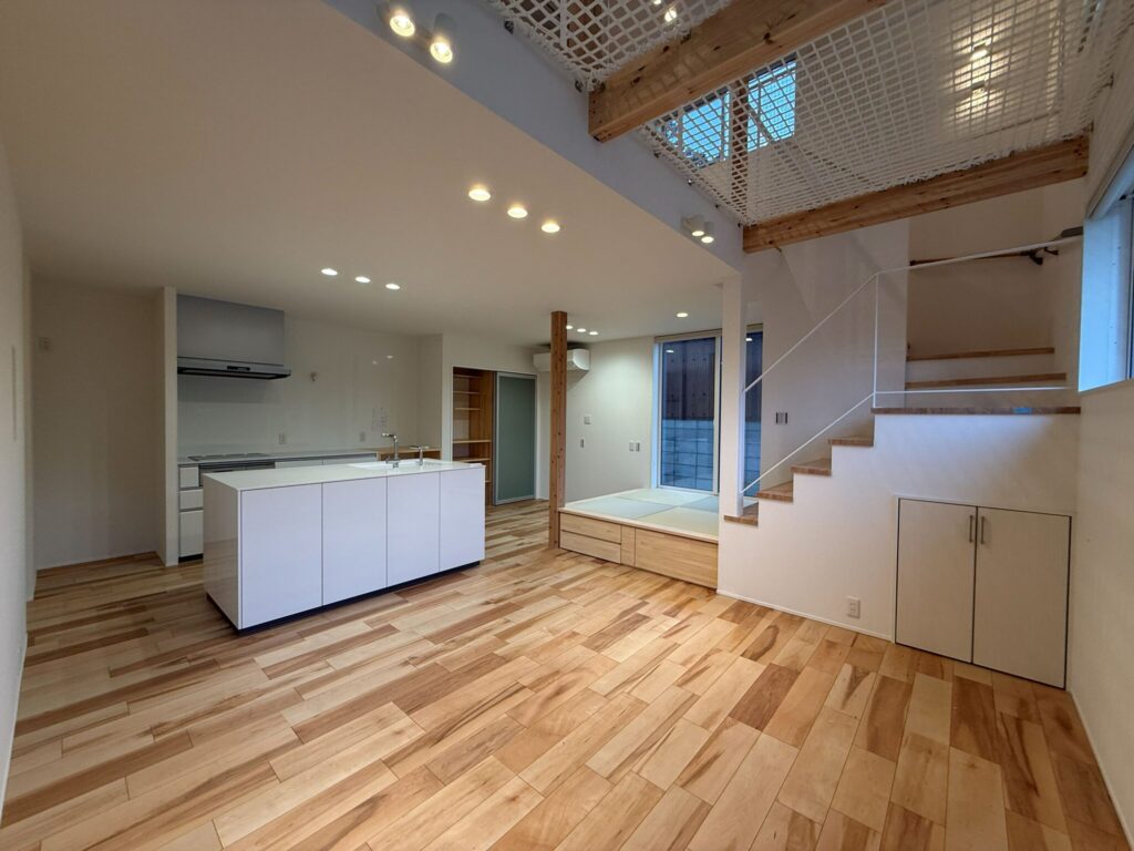 遊ぶ子どもたちの気配を、リビングから優しく感じ取れる設計です